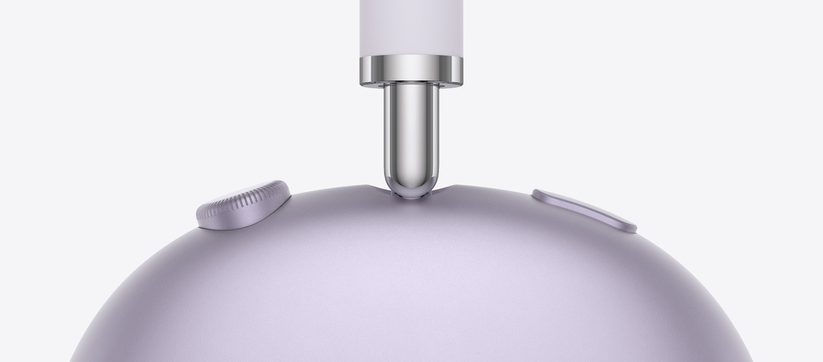 AirPods Max 2 headphones in purple color, top exterior, detail of noise control button and Transparency mode
