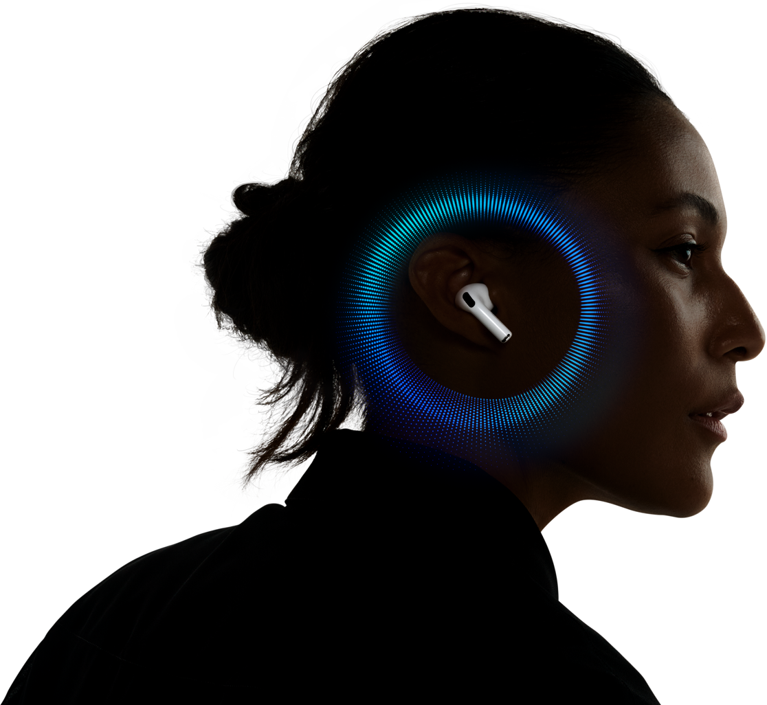 Adaptive EQ tunes music to your ears in real time based on the fit of your AirPods. Inward-facing microphones measure what you’re hearing, then adjust the low to high frequencies of a song — so you get consistently detailed playback, every time.