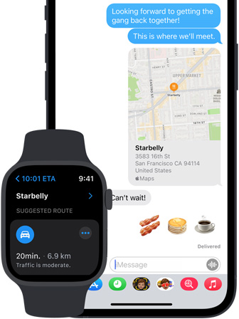 Enjoy a smooth, uninterrupted experience across all the Apple devices you use to get around. Haptic Feedback on Apple Watch nudges you in the right direction so you don’t have to get out your iPhone when you’re on foot. Calendar alerts on your Mac let you know when it’s time to stop working and go. Just say the word, and HomePod finds directions and sends them to your iPhone on your way out the door. And Maps also syncs automatically with Siri, Spotlight, Messages and Weather, to give you relevant information at all the right moments.