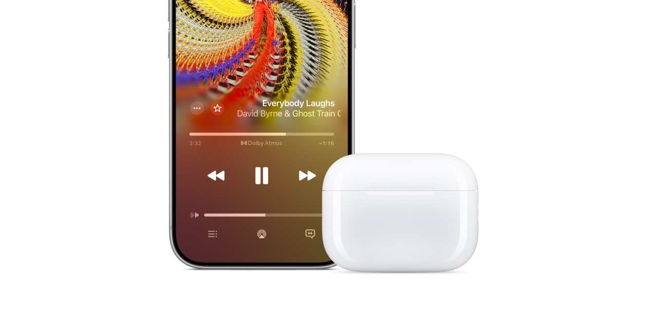 شارك ما تشاهده أو تستمع إليه مع صديقك بكل سهولة.16 ما عليك سوى تقريب سماعاته AirPods من iPhone أو iPad أو Apple TV الذي تتصل به. نعم! بهذه البساطة.