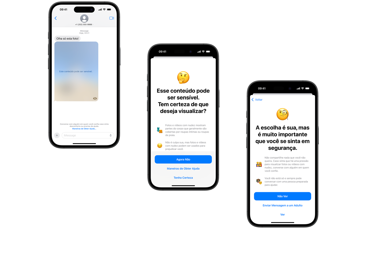 Muitos dados pessoais ficam nos aparelhos da sua família. Por isso, criamos hardware e software pensando em manter essas informações protegidas. Também usamos algumas das tecnologias de segurança mais avançadas em nossos produtos, como o Touch ID e o Face ID. E facilitamos para que os pais definam controles de privacidade nos dispositivos dos seus filhos