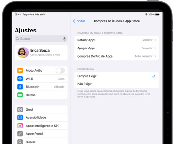 Se quiser, você pode impedir que seus filhos instalem apps novos, como de redes sociais ou de compartilhamento de fotos, e pode até desativar o Safari. Escolha o recurso Aprovar Compra para aceitar ou recusar os apps que eles tentarem comprar ou baixar, direto do seu aparelho.