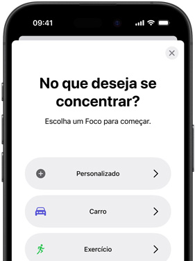 Ninguém deveria se distrair com o telefone ao dirigir. Com o Foco Carro, o iPhone não interrompe você com mensagens, ligações ou notificações até chegar ao seu destino. Em caso de emergência, quem chama consegue entrar em contato.