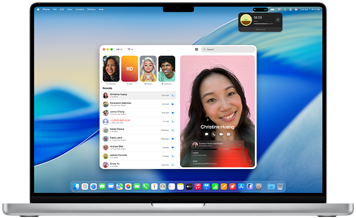 A barra de menus agora mostra as Atividades ao Vivo do seu iPhone. E, ao clicar em uma delas, o app é aberto pelo Espelhamento do iPhone para você interagir como se estivesse no telefone2.