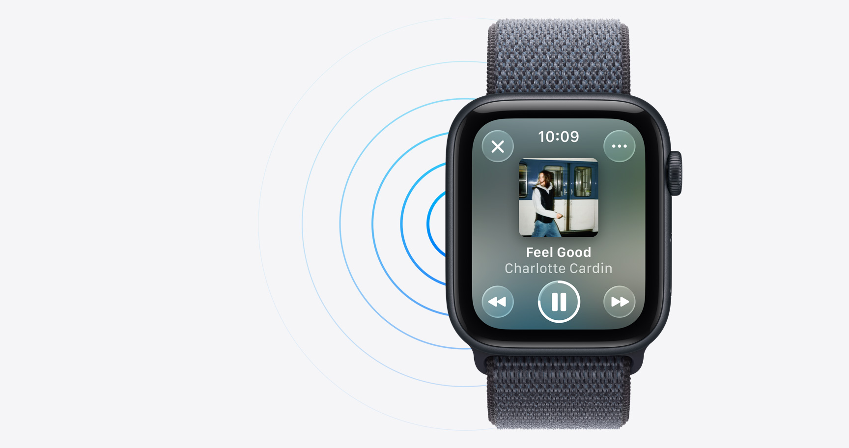 Apple Watch SE 3 se connecte d’elle-même à vos AirPods pour vous permettre d’écouter en mains libres de la musique, des livres audio ou des balados6. Et si vous n’avez pas vos AirPods, vous pouvez faire jouer vos contenus sur le haut-parleur de votre montre.