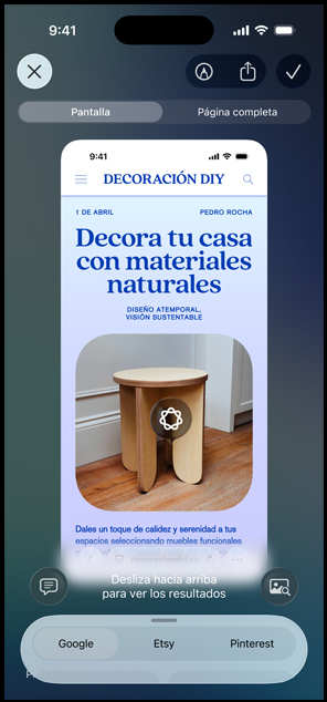 Busca información sobre lo que ves mientras das un paseo o sobre lo que aparece en la pantalla de tu iPhone. Resume lo que estás viendo, haz preguntas y obtén diferentes ideas, como una lista de recetas con lo que tienes en la nevera. Incluso puedes buscar fácilmente entre tus apps favoritas para saber dónde comprar esa prenda que viste en internet y que tanto te gustó.4