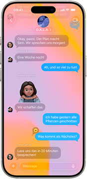 Apple Intelligence ist jetzt noch um­fassender integriert. So kannst du über ver­schie­dene Sprachen hinweg kommu­ni­zieren, noch per­sön­lichere Bilder erstellen und mehr Auf­gaben erle­digen.7
