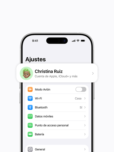 • Si tus hijos utilizan tu Cuenta de Apple, tendrán acceso a tu contenido personal, como los mensajes y las fotos. Además, no podrás usar todas las prestaciones para familias.