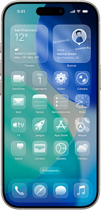 Con las cualidades ópticas del vidrio y una gran sensación de dinamismo, Liquid Glass trae un nuevo lenguaje visual a tu pantalla de bloqueo, pantalla de inicio, Centro de Control, apps y más.