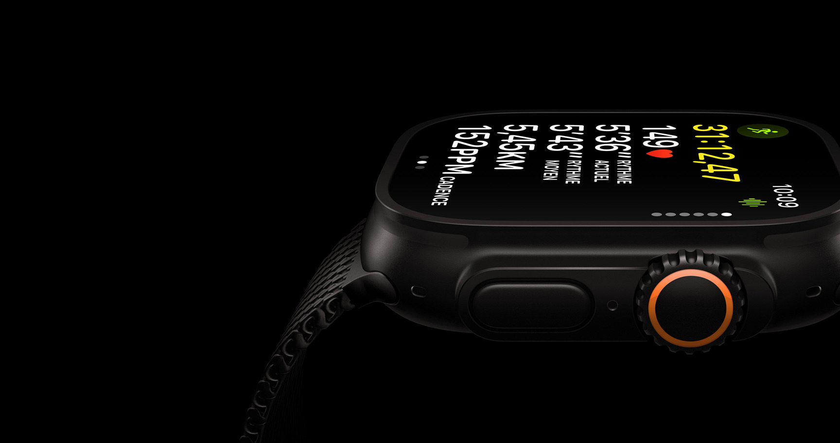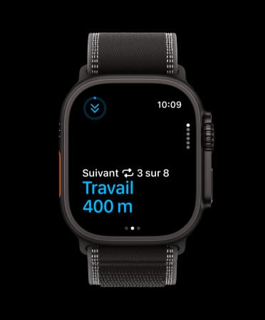 L’Apple Watch Ultra 3 a été conçue pour être une championne de la poly­valence, et servir aussi bien de montre de sport que de montre connectée. Elle vous accompagne toute la journée, du bureau au dîner en passant par votre cours de boxe ou votre sortie de plongée. Où que vous alliez, vous pouvez prendre des appels, répon­dre à des messages, écouter de la musique en streaming et effectuer des paie­ments22. Tout en gar­dant un œil sur vos dernières données de santé et en sachant qu’elle veille sur votre sécu­rité, au cas où. Ce n’est pas pour rien qu’elle s’appelle Ultra.