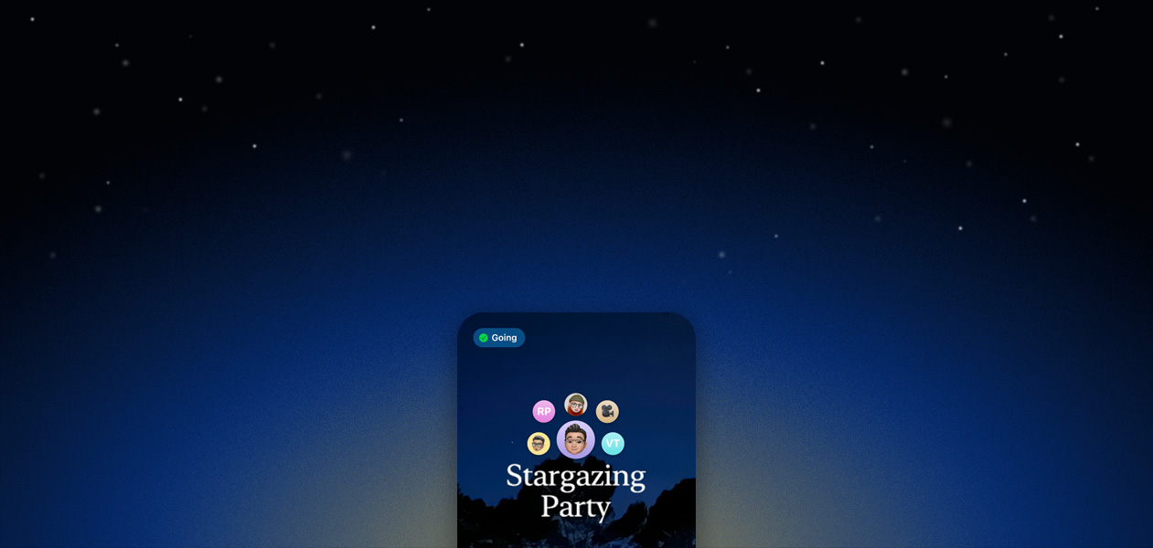 Apple Invitations est une nouvelle fonctionnalité iCloud+ conçue pour vous aider à célébrer tous vos moments importants. Personnalisez votre invitation avec les photos de votre photothèque ou utilisez Image Playground6 pour créer des images originales. Ajoutez de la musique, des plans et des photos pour donner vie à votre évènement. Puis envoyez l’invitation aux personnes de votre choix, qui pourront y répondre.
