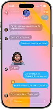 Choisissez parmi les superbes options intégrées ou ajoutez l’une de vos photos pour apporter une touche personnelle à vos conversations dans Messages.