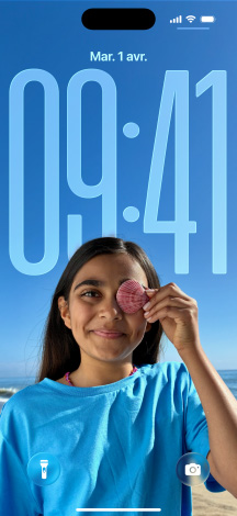 L’affichage de l’heure s’adapte automatiquement aux notifications et à la photo de fond d’écran, sans masquer le sujet à l’écran. Et lorsque vous déplacez votre iPhone, votre photo s’anime avec un nouvel effet 3D6.