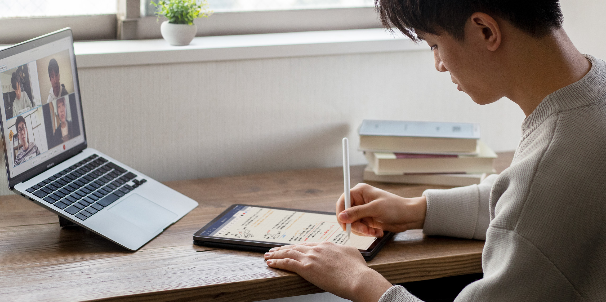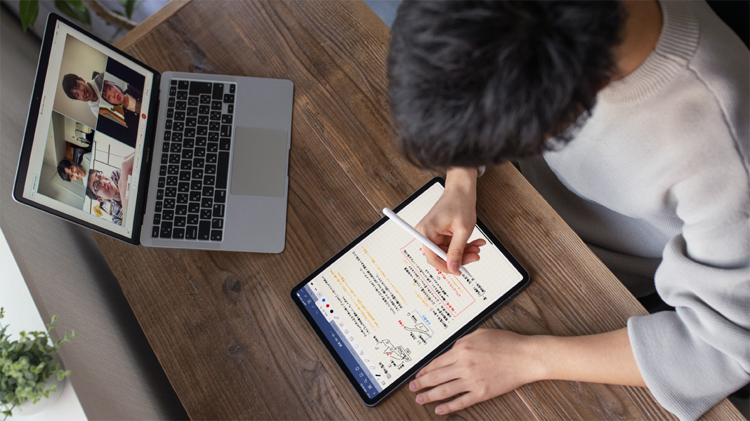 Like many students, Takuto adjusted to remote learning by taking advantage of cutting-edge technology. During online lectures, he used Split Screen on iPad to see his professor’s presentation on one side and scribble notes on the other. And during virtual study groups, Takuto used FaceTime on Mac to connect with classmates while leveraging the immersive drawing canvas on iPad to capture group projects.