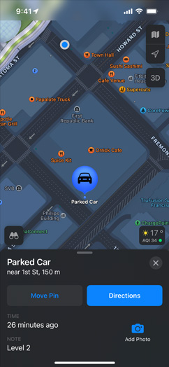 • Maps doesn’t associate your data with your Apple Account, and Apple doesn’t keep a history of where you’ve been. Many personalized features, like locating your parked car, are initiated right on your device. Data used to improve navigation, such as routes and search terms, is not associated with your identity. Instead, that information is based on random identifiers that are constantly changing.