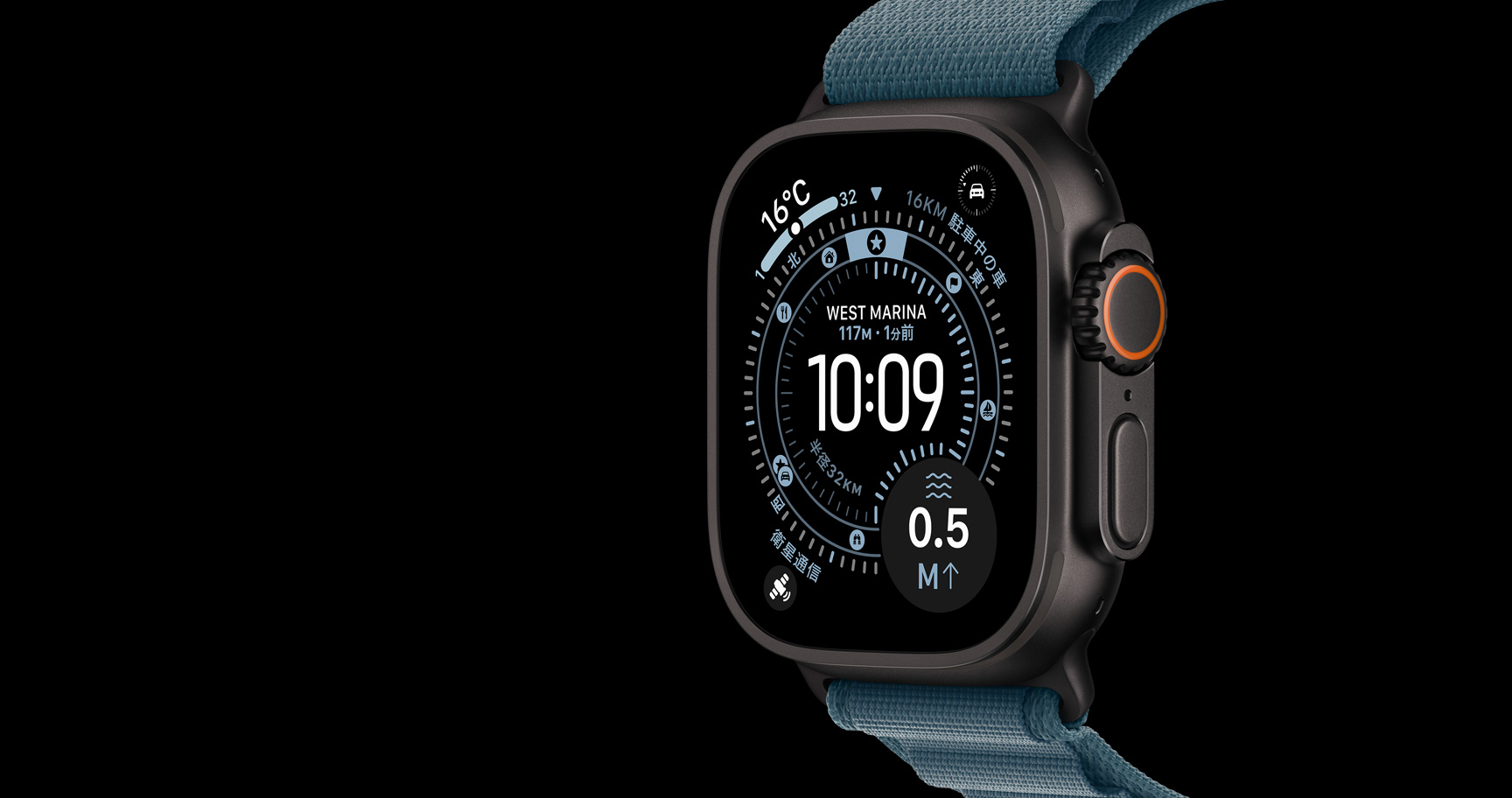 Apple Watch Ultra 3は、マルチタスクの達人です。ある時はスポーツウォッチ。またある時はスマートウォッチとして、会議からボクシングのレッスン、スキューバダイビングからディナーと、あらゆる場面でシームレスに活躍します。電話に出る。メッセージに返信する。音楽をストリーミングする。外出先で支払いをする23その間も健康に関する最新の測定値を記録し続け、万一のために便利な安全機能をスタンバイさせる。まさにUltraです。