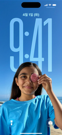 시간 표시가 사진 배경화면과 알림에 맞게 유동적으로 변해, 사진 속 주인공이 늘 화면에 잘 보이게 유지됩니다. iPhone을 움직이면 새로운 3D 효과로 사진이 생동감 있게 살아나죠.6