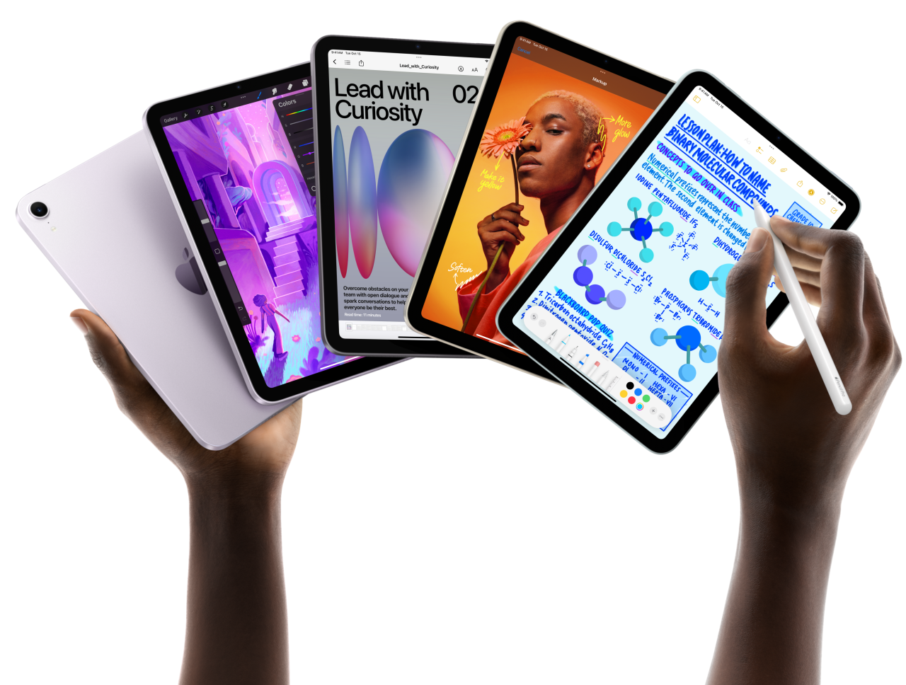 The blazing-fast A17 Pro chip makes iPad mini a portable powerhouse. It delivers a big boost in performance and it’s built for Apple Intelligence. The 16‑core Neural Engine is up to 2x faster than the previous generation. The 5‑core GPU brings advanced features like hardware‑accelerated ray tracing for graphically intense triple‑A games. And you can work, play, and create from anywhere with all‑day battery life.3