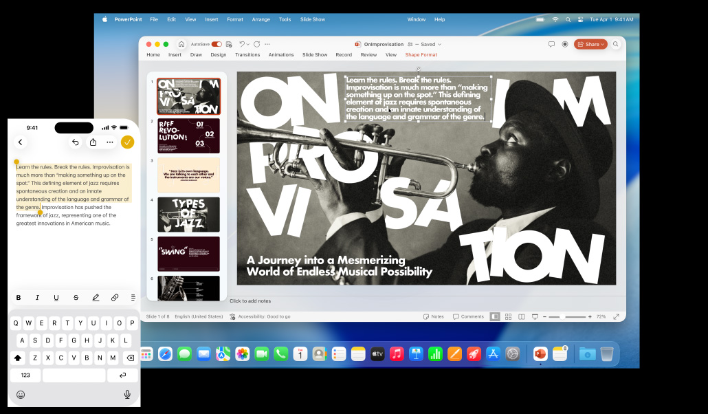 La Mac, el iPhone, el iPad y el Apple Watch ya son increíbles por su cuenta. Pero al usarlos juntos, se lucen mucho más. Gracias a Continuidad, tus dispositivos trabajan en equipo con total fluidez para que puedas acceder a un mundo de funcionalidades espectaculares. Empieza a escribir un email en tu Mac y termínalo en el iPad. Toma una foto en tu iPhone para verla al instante en la Mac. O haz llamadas sin tener que usar el iPhone.1