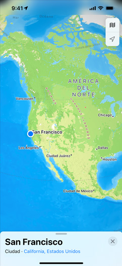 La actualización a iOS 15, iPadOS 15 y macOS Monterey te permite disfrutar de las últimas funcionalidades de Mapas, como el globo interactivo, las experiencias en 3D para ciudades como San Francisco, Los Ángeles, Nueva York y Londres, el transporte público cercano y mucho más.