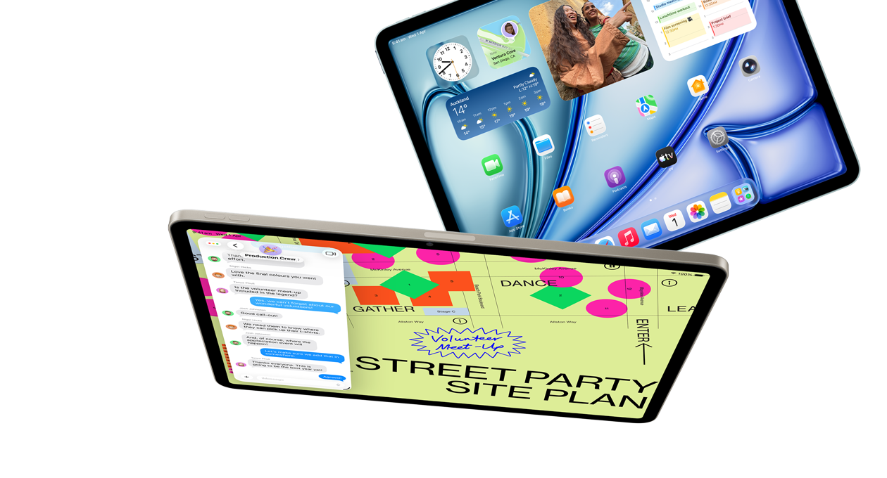 iPadOS 26 introduces Liquid Glass, a stunning new design with a vibrant look and game-changing enhancements that put iPad Air productivity on a new level. A re-imagined, intuitive windowing system gives you greater power and flexibility than ever before. Run pro apps, play high-performance games and take on creative projects of any size with a natural, touch-first experience.