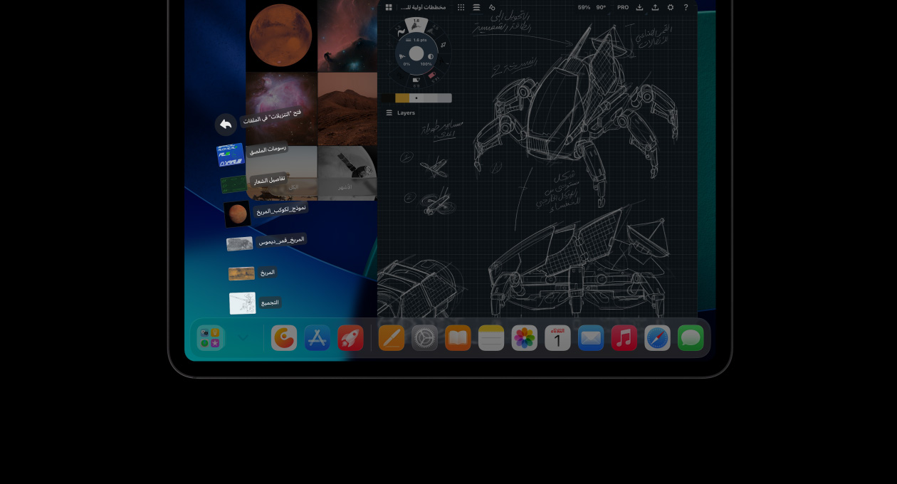 يقدم نظام iPadOS 26 تصميماً خلاباً مع Liquid Glass وتحسينات تقلب الموازين وترتقي بإنتاجية iPad Pro إلى مستوى جديد. كما يمنحك نظام نوافذ مبتكر وسهل الاستخدام قوة ومرونة أكبر من أي وقت مضى. شغّل التطبيقات الاحترافية، واغمر حواسك في الألعاب عالية الأداء، وترجم أفكارك الإبداعية مهما كبرت في تجربة بديهية تعتمد أساساً على اللمس.