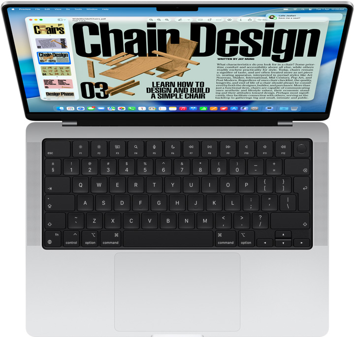 With Continuity Camera, you can take a photo with your iPhone and instantly see it in an email on your Mac. Or scan a receipt with your iPhone and see it appear in Messages — automatically cropped, straightened, and ready to share. Continuity Camera works with lots of apps, including Notes, Pages, and Keynote. It’s another way iPhone and Mac just click. Continuity Camera also unlocks new capabilities for video calls — like FaceTime and Zoom. You can share a top-down view of your workspace with Desk View. And Center Stage keeps you in the picture if you move around during your call.