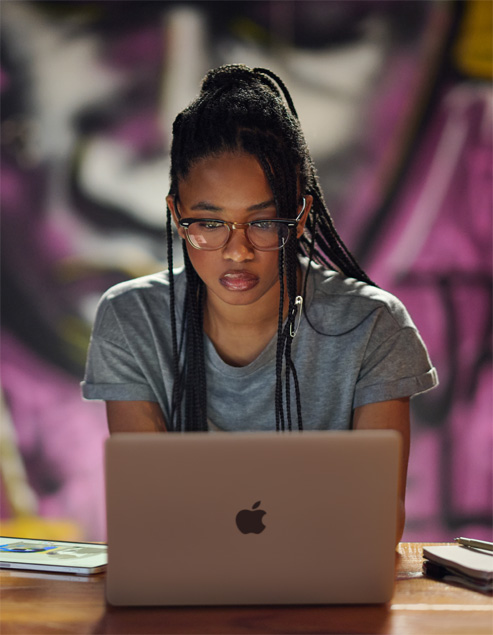 Daisy börjar alltid på Mac, oavsett om hon producerar en film för studierna eller en vlogg för sociala medier. ”Jag gillar att börja skriva manus och skapa storyboards i inbyggda appar som Anteckningar och Freeform. Utformningen och funktionerna är oerhört enkla och det krävs inga abonnemang eller komplicerade gränssnitt – apparna har allt jag behöver när jag skapar kreativt innehåll”, säger hon.
