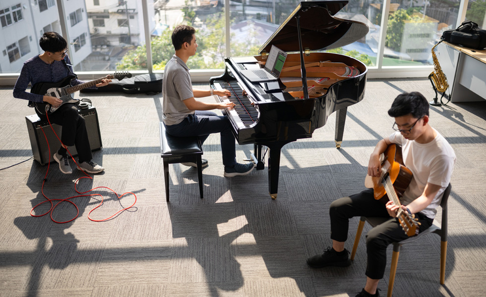 Trots ett hektiskt schema prioriterar Phoom regelbundet att spela och skapa musik med sina vänner. Och under nedstängningarna i samband med coronapandemin, när de var tvungna att träffas online, hittade Phoom en möjlighet att kombinera sina två största intressen. Han var besviken på den eftersläpande och dåliga ljudkvaliteten i befintliga mötesappar och utvecklade en app med Xcode som gör det möjligt för musiker att spela tillsammans på distans på ett helt uppslukande och smidigt sätt.