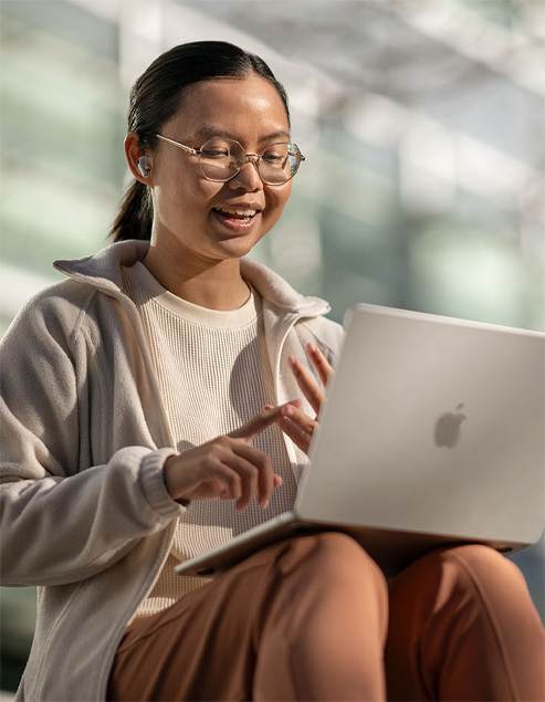 För Ruoshan innebär Mac-datorns kraft och mångsidighet att hon snabbt kan växla mellan programmering och studier. Hon skapar prototyper av sina appar i Figma, utformar designelement i Adobe Photoshop och väcker sedan alltsammans till liv med Swift i Xcode. I sina studier i socialt arbete använder hon Keynote för presentationer och lägger in markeringar i material i Noteful.
