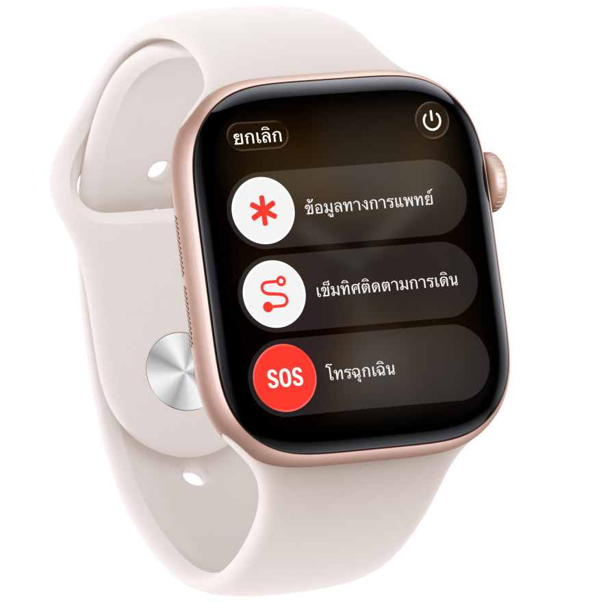 หากต้องการความช่วยเหลือฉุกเฉินเมื่อไหร่ แค่กดปุ่มด้านข้างของ Apple Watch Series 11 ค้างไว้ เพื่อโทรหาบริการฉุกเฉิน และแชร์ตำแหน่งของคุณได้เลย19