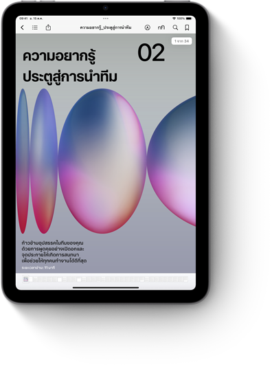 จอภาพ Liquid Retina ขนาด 8.3 นิ้ว มาพร้อม True Tone, ขอบเขตสีกว้าง P3 และการสะท้อนของแสงที่ต่ำมาก ทำให้ตัวหนังสือนั้นคมชัดและมีสีสันที่สดใส ไม่ว่าคุณจะอยู่ที่ไหน1