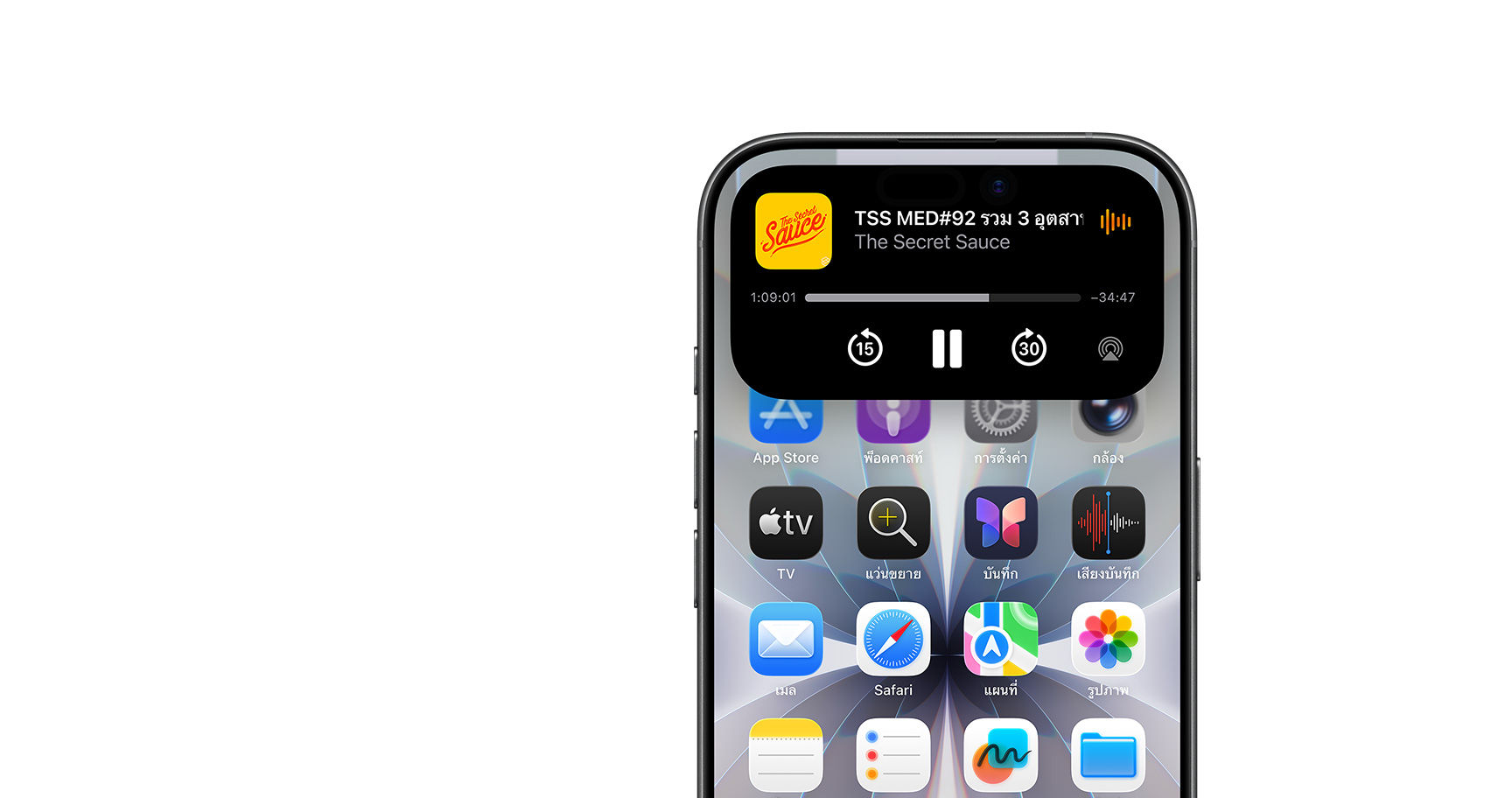 iPhone Air เป็น iPhone ที่บางที่สุดเท่าที่เคยมีมา ขับเคลื่อนด้วยชิป A19 Pro และยังทนทานยิ่งกว่า iPhone รุ่นไหนๆ ที่เคยมีมาด้วยกรอบไทเทเนียมขัดเงา รวมถึงด้านหน้าแบบ Ceramic Shield 2 ที่ทนการขีดข่วนได้ดีขึ้น 3 เท่า และด้านหลังแบบ Ceramic Shield ที่ทนการแตกร้าวได้ดีขึ้น 4 เท่า นอกจากนี้ยังมาพร้อมกล้องหน้า Center Stage ใหม่ที่ช่วยให้คุณถ่ายเซลฟี่กลุ่มได้ฉลาดยิ่งขึ้น และยังบันทึกวิดีโอแบบถ่ายด้วยกล้องคู่ได้อีกด้วย ส่วนกล้องหลัก Fusion 48MP พร้อมเทเลโฟโต้ 2 เท่าก็รองรับคุณสมบัติสุดล้ำใหม่ล่าสุดอย่างภาพถ่ายบุคคลเจเนอเรชั่นถัดไปและอีกมากมาย ทั้งยังมีจอภาพ Super Retina XDR ขนาด 6.5 นิ้ว ที่เต็มอิ่มสมจริงพร้อม ProMotion สูงสุด 120Hz และแบตเตอรี่ที่ใช้งานได้ตลอดวัน พร้อมด้วยเครื่องมือ Apple Intelligence ที่มีประโยชน์ อย่างการลบออกและอีกมากมาย