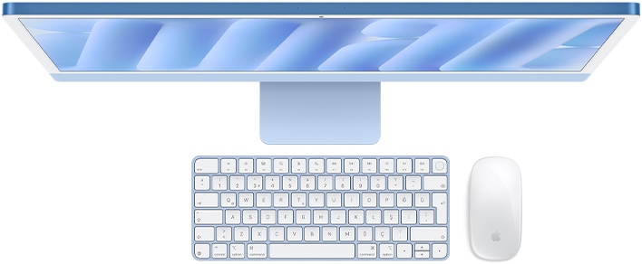 Magic Mouse ve Touch ID özellikli Magic Keyboard ile birlikte gösterilen iMac