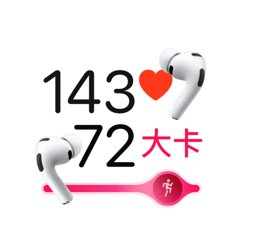 • 搭配 AirPods Pro 3 或 Powerbeats Pro 2 使用 Fitness+ 時,螢幕上會呈現你的即時個人測量指標,包括你的心率和體能訓練中消耗的卡路里。佩戴與裝置連接的第三方心率監測器時,也能查看這些測量指標1