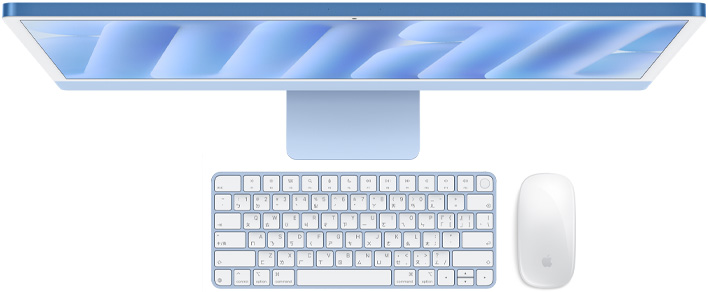 iMac 搭配巧控滑鼠與含 Touch ID 的巧控鍵盤一同展示